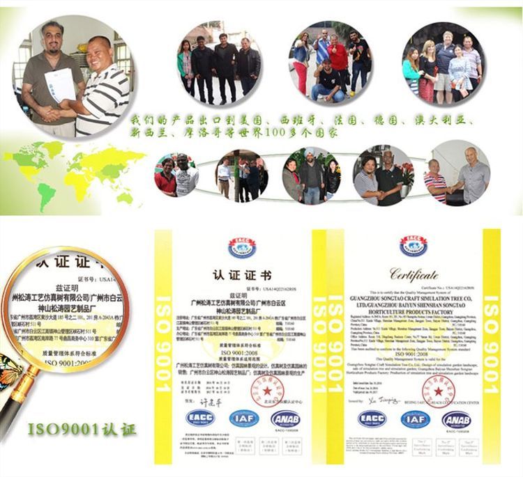 厂家保障:叶片跟踪服务2年,出厂2年内不断枝、不掉叶,一般可使用5—6年。