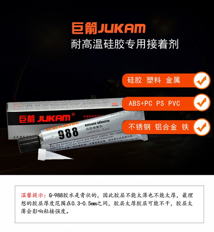 巨箭牌988硅胶粘接不锈钢耐高温环保强力慢干型密封胶水