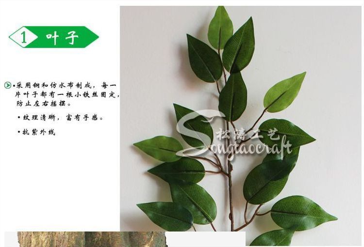 仿真榕树原产于热带亚洲。仿真榕树,材质是用玻璃钢、手感榕树叶,可做室内、室外仿真包柱子榕树,半包柱子榕树、全包柱子榕树、规格尺寸可定做,枝栩栩如生,造型独特,仿真包柱子榕树高达30米,可向四面无限伸展。其支柱根和枝干交织在一起,形似稠密的丛林,因此被称为“独木成林”。仿真包柱子榕树主要应用于园林、餐厅绿化。