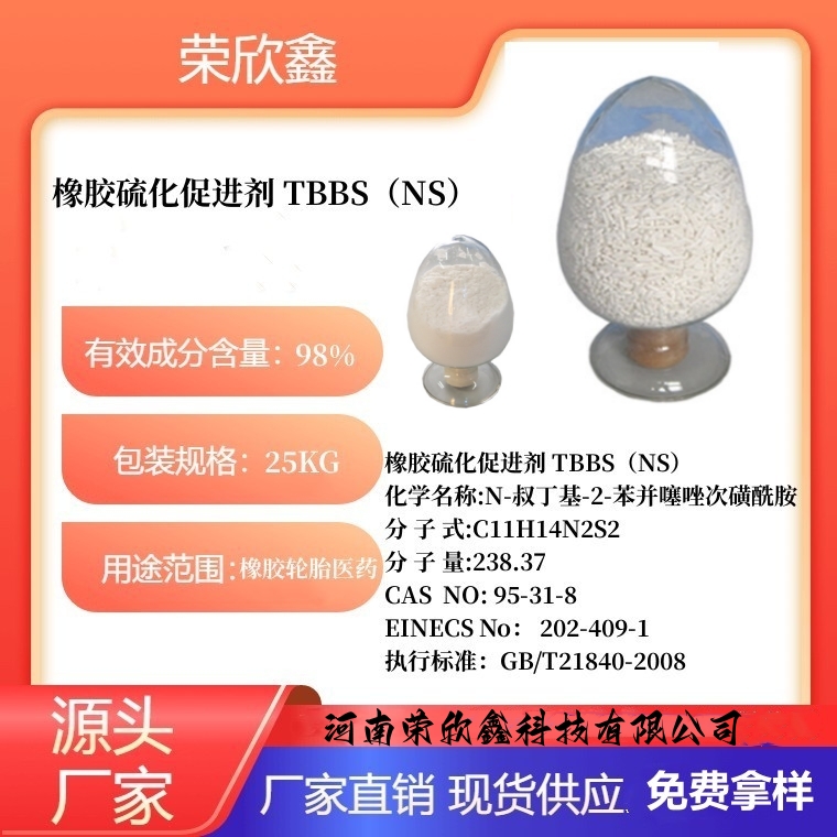 产品特性 | 本品是天然胶、顺丁胶、异戊胶、丁苯胶与再生胶的后效性促进剂,尤其适用于含碱性较强的炭黑胶料。操作温度下安全,抗焦烧性强、硫化速度快,定伸强度高,能提高合成胶的使用比例。低毒高效,是NOBS理想的替代品,具有优异的综合性能,被称为标准促进剂。广泛用于子午线轮胎的生产。 | ||