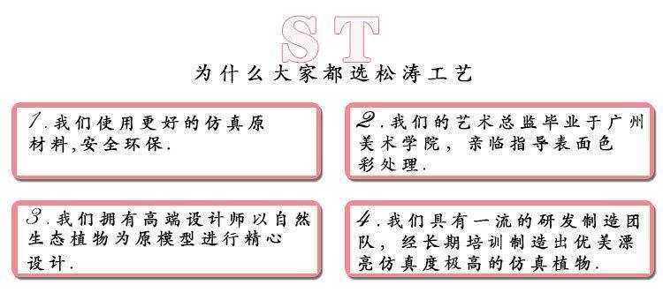 广州松涛工艺仿真树有限公司(香港松涛工艺美术实业有限公司)是一家集生产、设计、安装为一体的仿真树厂家。本公司艺术造诣深厚,成立于九十年代,是国内早专业生产仿真植物的企业之一。拥有“仿真植物、仿真树”、造景工程、园艺设计”两大核心品牌价值。公司拥有一群富有经验和激情的销售人员、专业的设计团队和经验丰富的施工队伍。立志打造世界仿真树品牌。