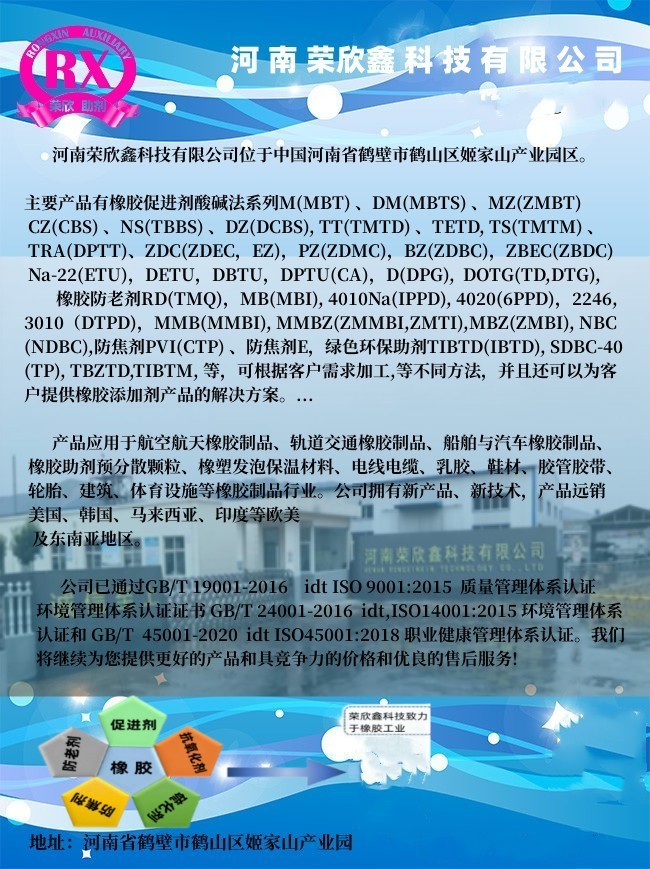 用途范围 | 广泛用于子午线轮胎的生产。 可同醛胺、胍类、秋兰姆类促进剂并用,与防焦剂PVI并用时,构成良好的硫化体系。主要用于轮胎、胶鞋、胶管、胶带、电缆的制造生产。 | ||