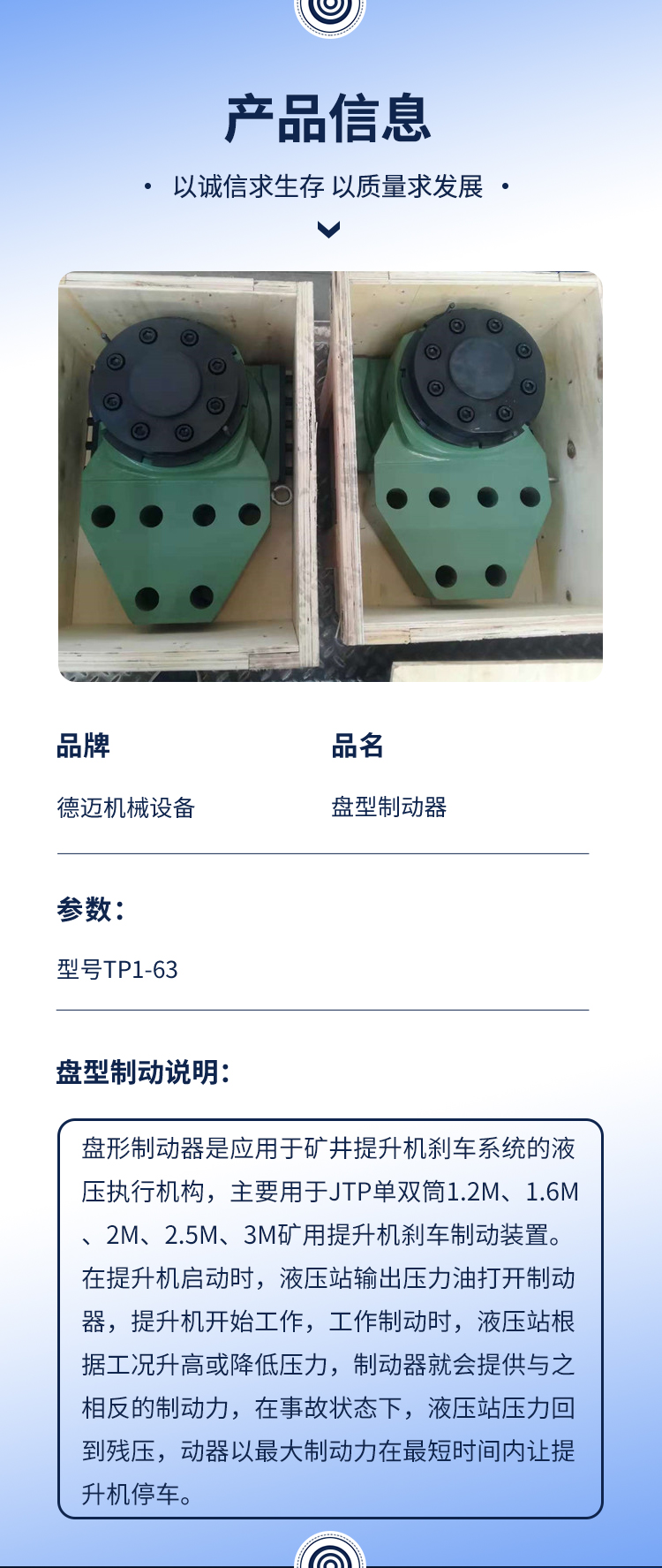德迈盘型制动器TP1-63变频矿用提升机绞车刹车盘欢迎来电