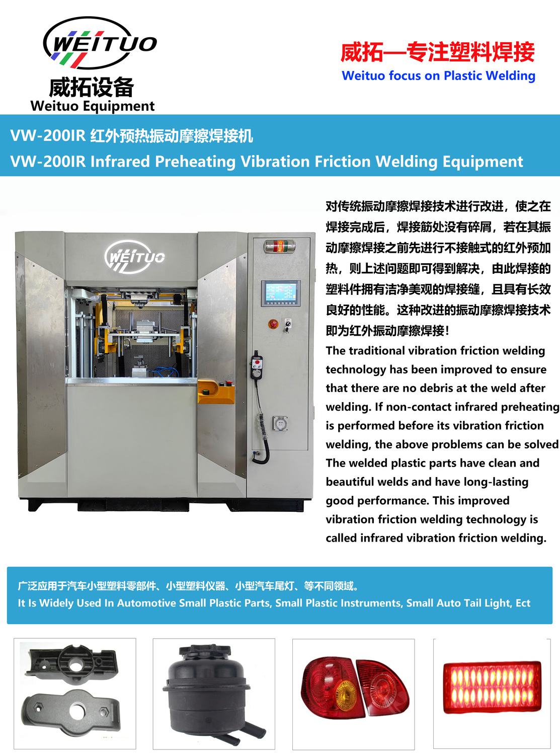 技术优势 | 对传统振动摩擦焊接技术进行改进,加入红外预热 | ||