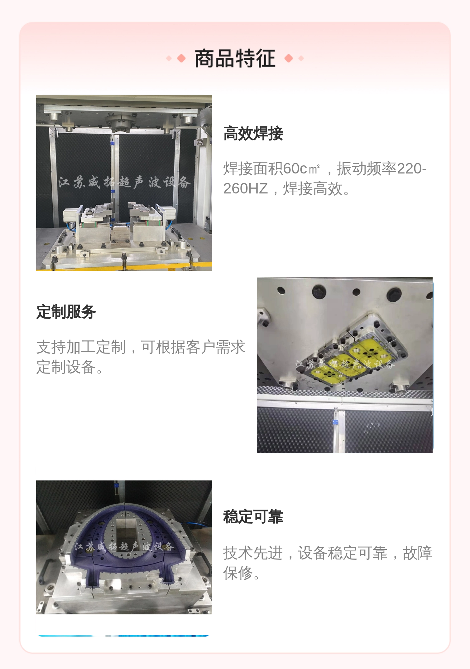 应用场景 | 适用于汽车塑料配件焊接 | ||