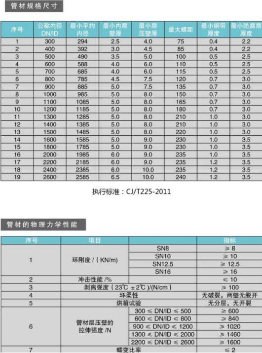 生产直径范围300-3000毫米,环钢度可以达到SN8、SN12.5、SN16等几个等级。弥补了过去较大直径塑料埋地排水管一般环刚度只能达到SN8的限制。
