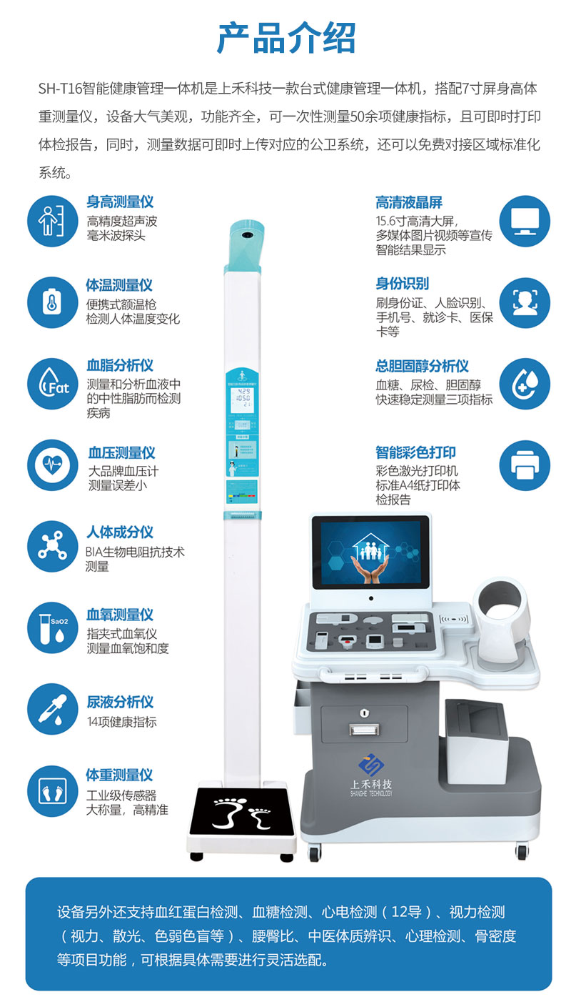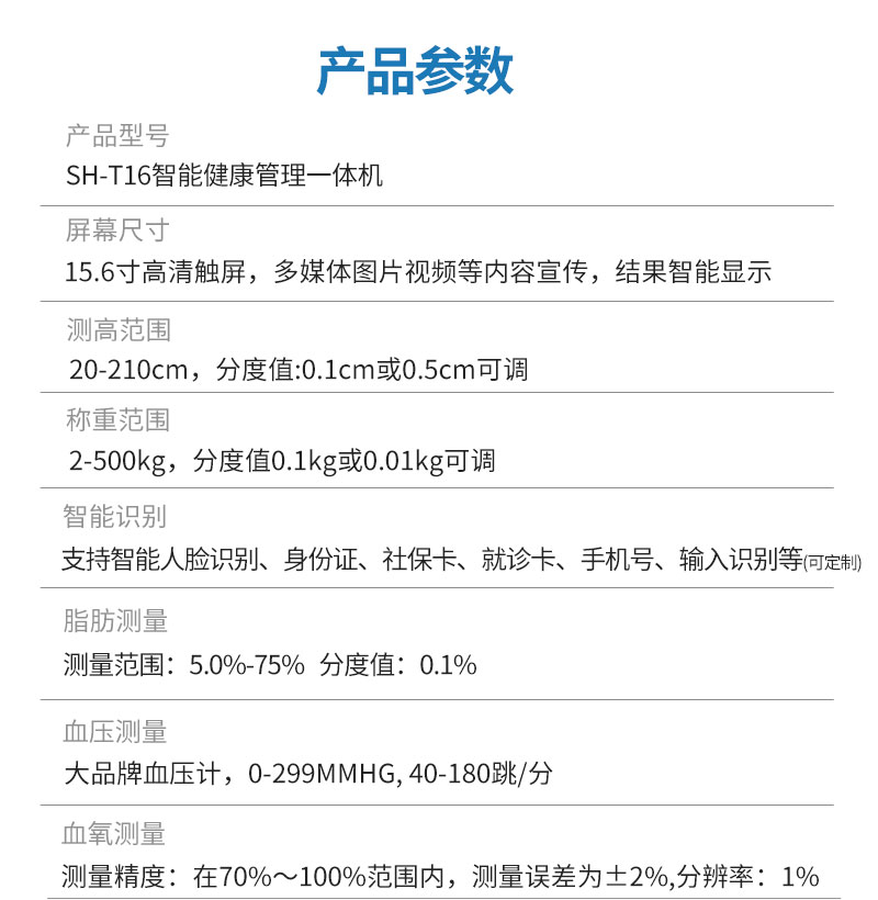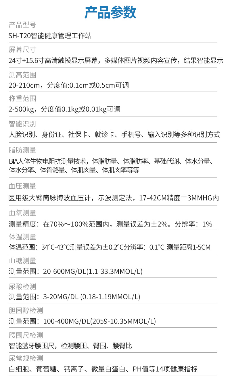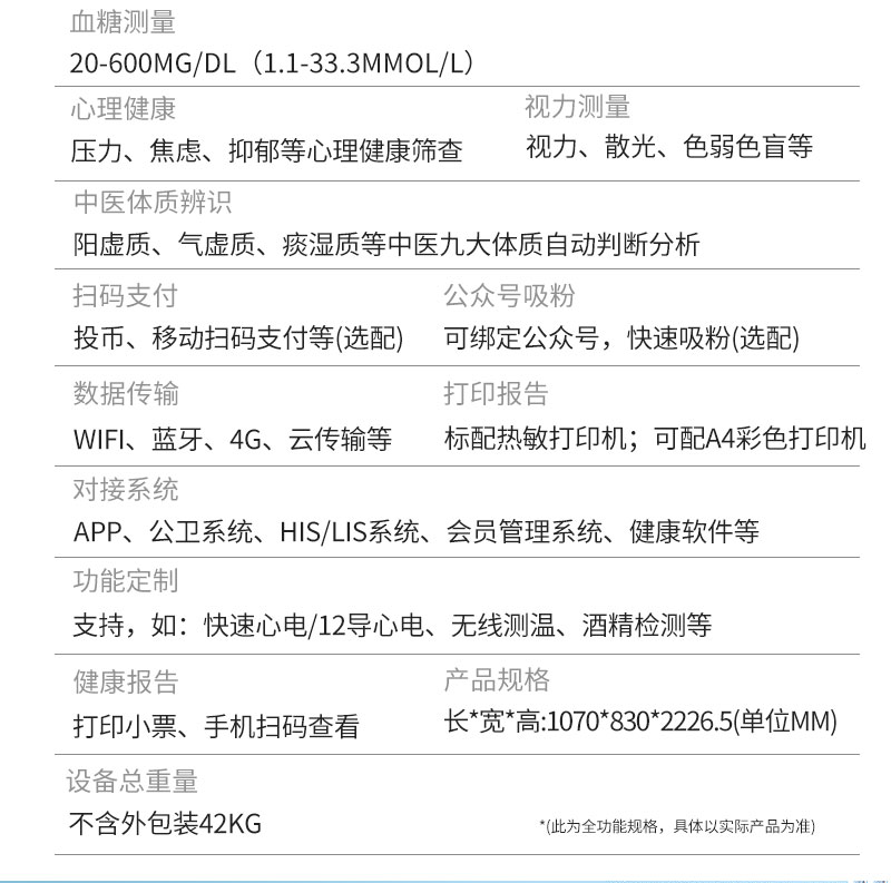 其他项目 | 设备支持多达20 体检项目,90 个健康指标 | ||