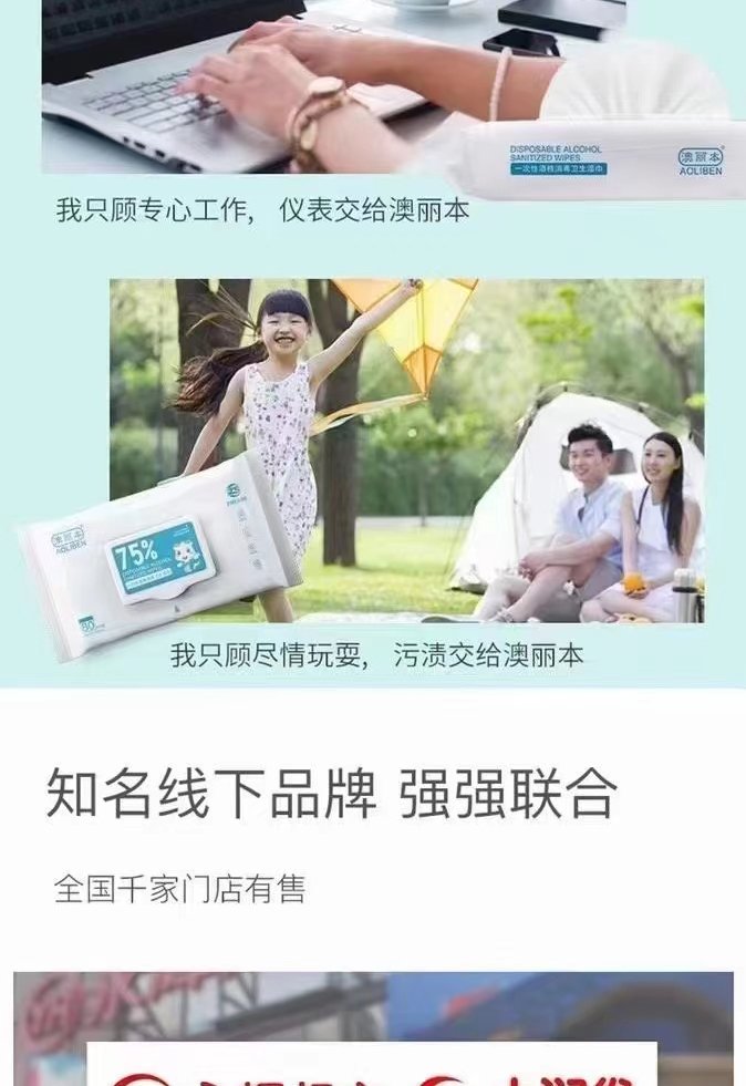 品名 | 澳丽本一次性酒精消毒湿巾 | ||