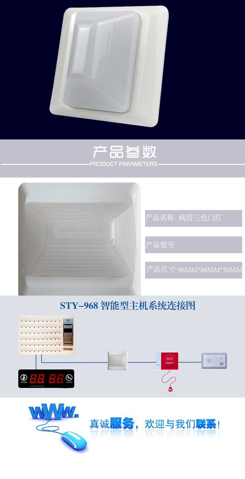 数字呼叫器门灯,配智能呼叫对讲系统,分机呼叫时房间门外指示,三级护理不同颜色红、绿、黄显示。