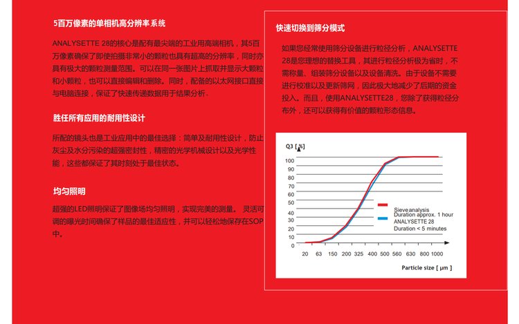 测量速度 | 最高可达75快速图像分析用于颗粒粒型及粒度分析张/sec | ||