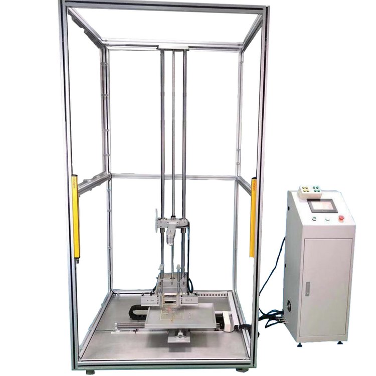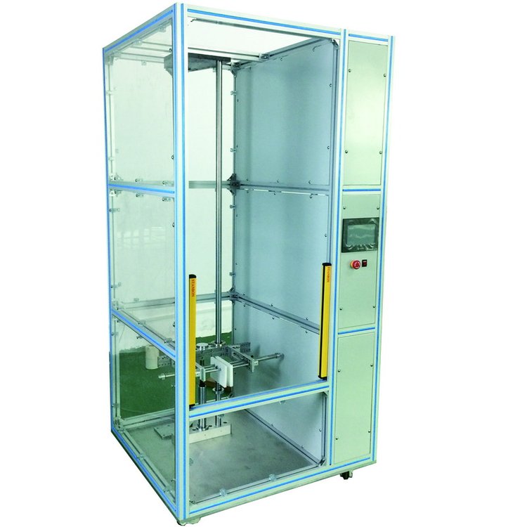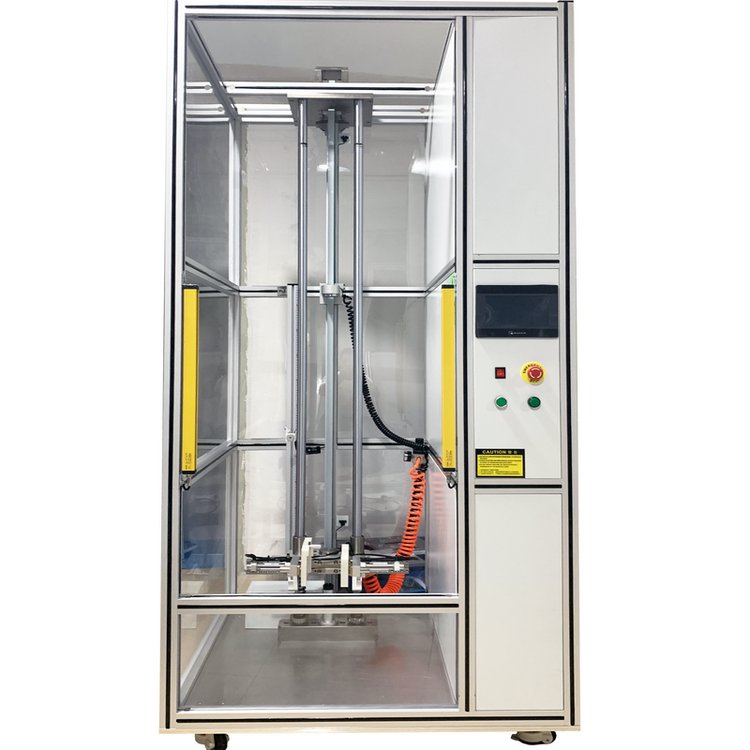 定向受控跌落试验机用双立柱直线轴承导向,伺服电机 同步带驱动升降,可任意设定测试高度,且定位准确可以多角度测试产品,本仪器用触摸屏 PLC控制,可设置和显示测试高度和跌落次数等数据,全封闭式外围框架和开门即停的屏蔽门为操作者的安全提供保障;跌落板直接置于地上,避免其他因素影响,使测试更接近真实。本仪器可以完成的主要功能有:定向跌落测试;自由跌落测试;自动连续跌落及和手动功能单次跌落。