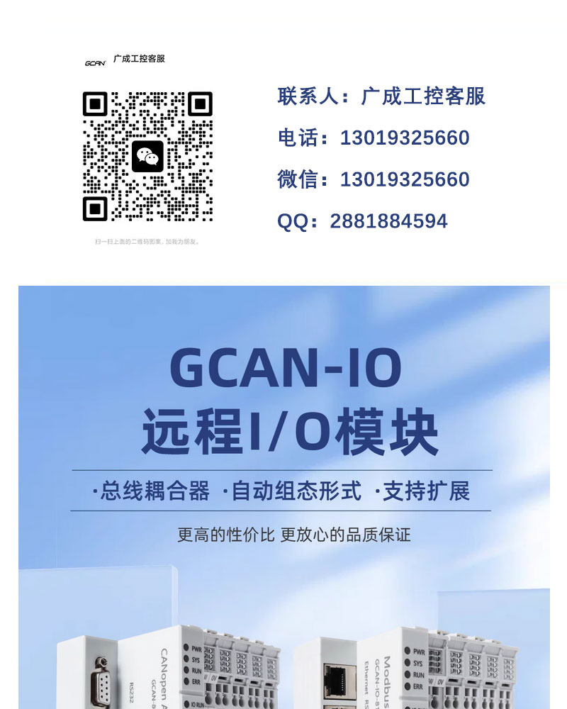 广成科技可搭配modbusPLC扩展IO用耦合器GCAN-8100供应