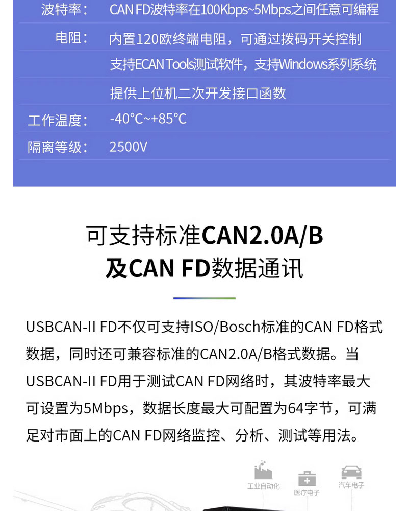 波特率设置范围 | 40Kbps至1Mbps | ||