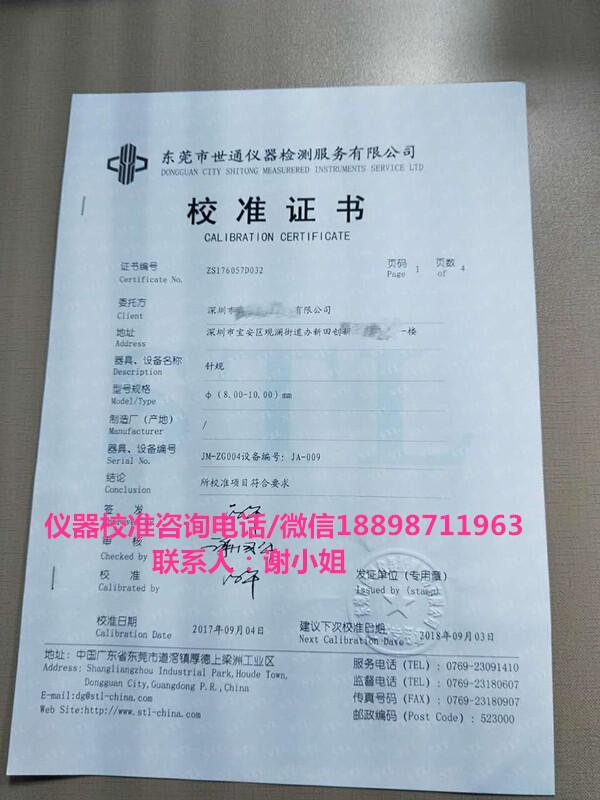 世通仪器中心是依照《中华人民共和国法》及有关法规规定,经技术标准考核合格,专注于仪器,仪器,仪器,仪器外校,仪器,仪器, 仪表,仪表,仪表,仪表,仪表,仪表外校,量具,量具,量具,量具,量具,量具外校,内校员培训的专业机构.本中心服务方式灵活,有3种方式:安排下厂、上门收取仪器、快递过来.我们秉持“专业、高效、服务”的理念,朝行业第一和国际化的目标迈进与努力.我们愿兴与您携手共进,并期许成为您值得信赖的工作伙伴!公司的业务分布在:东莞、深圳、惠州、广州、中山、佛山、珠海、江门、河源、肇庆、清远、韶关、汕头、广西、湖南、江西,上海,江苏,浙江,湖北,四川,贵州等全国各地区.本中心设有:力学、长度、几何量、衡器、电磁学及无线电室、热工等专业实验室.中心可对以上类别范围的各国仪器进行,数据均可溯源至基准和国际单位制(SI),并出具符合ISO、UL、3C、CQC、CE及客户验厂审核等要求之/报告.我司将以最合理的价格.最优质的服务,最高品质的技术为广大顾客服务. 欢迎您来电咨询洽谈!销售工程师电话:18898711963