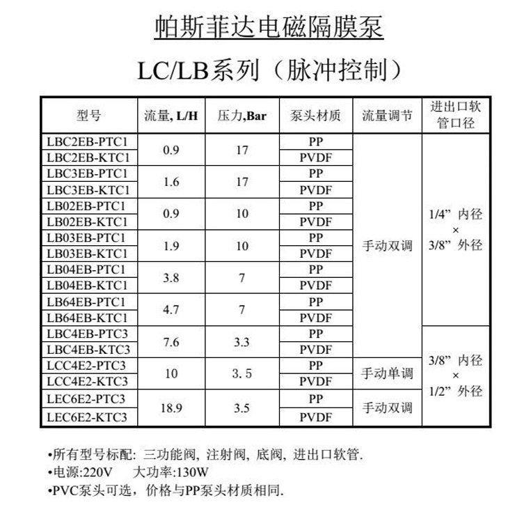 帕斯菲达电磁泵LBC2EB-KTC1型 Pulsafeeder脉冲控制加药计量泵
