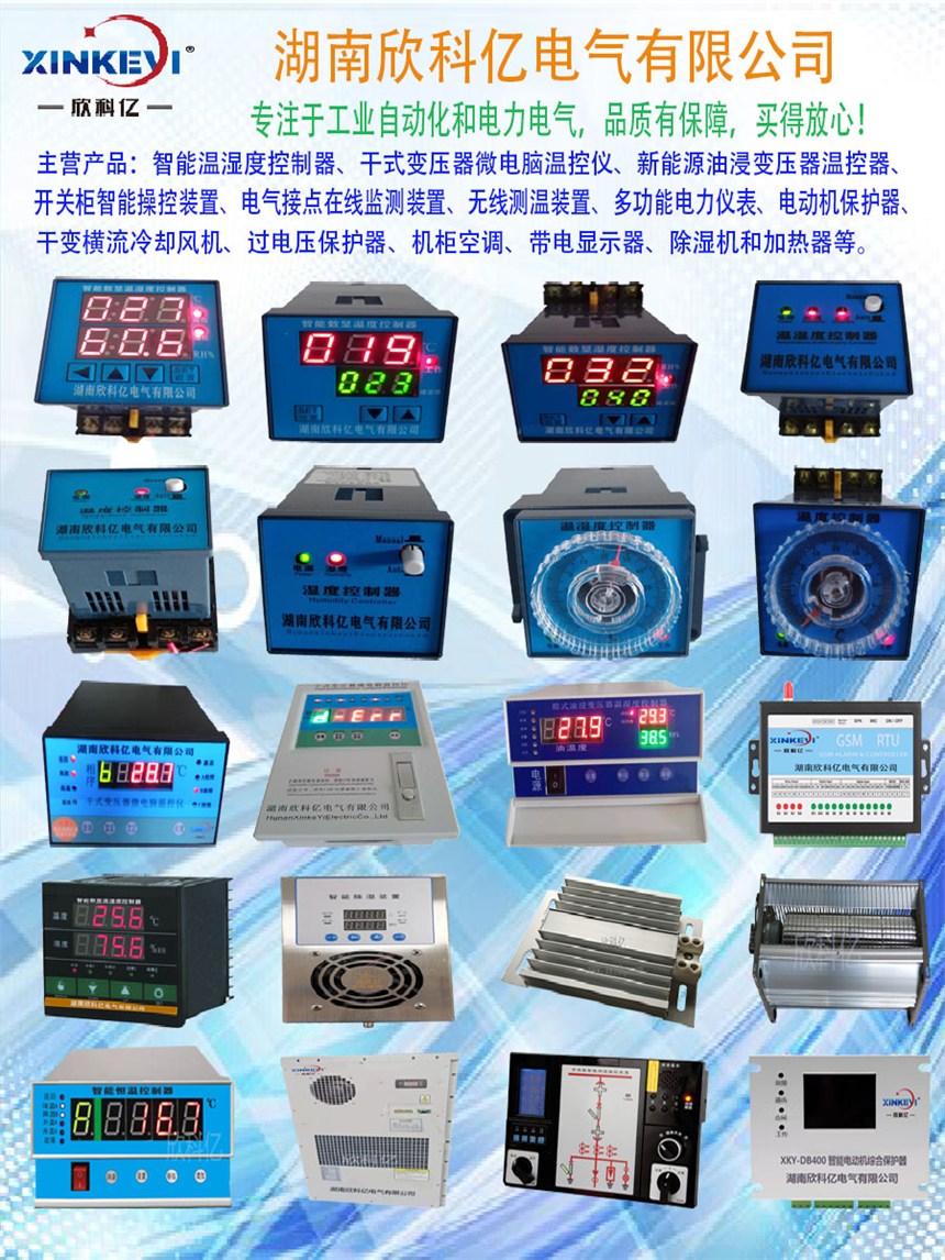 多功能电力仪表、开关柜智能操控装置、智能温湿度控制器、电动机保护器、电气接点在线监测装置、干式变压器微电脑温控仪、新能源油浸变压器温控器、机柜空调、干变横流冷却风机、过电压保护器、户内高电压带电显示器、除湿机和加热器等。