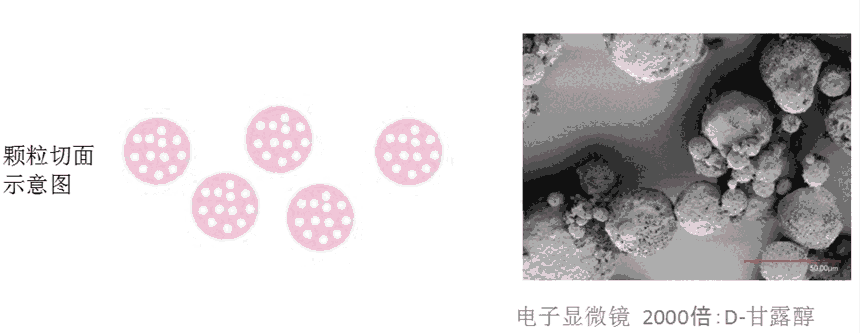 通过D‐甘露醇进行喷雾冷冻干燥造粒时的粒度分布,SEM观察数据