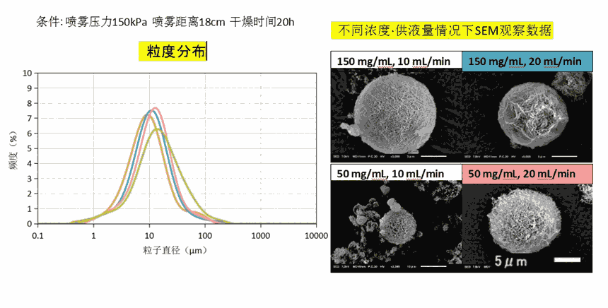 2.冷冻干燥法(Freeze Drying):由于干燥过程中未加热,因此未发生收缩,在预冻的阶段由于微细粒子没有被加工,无法得到造粒效果,因此微粒子的形状不均匀。