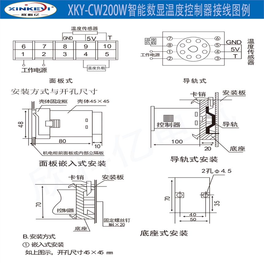 XKY-CW200W数显温度控制器主要用于中高压开关柜、端子箱、环网柜、箱变等设备内部温度调节控制。可有效防止因低温、高温造成的设备故障以及受潮或结露引起的爬电、闪络事故的发生。该系列产品抗干扰能力强,可靠性高。温度控制器带有一路温度传感器,随时监测被测环境内部的温度变化,并可通过设定方式对小环境内的温度进行自动控制。