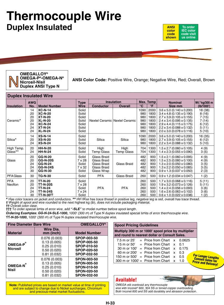 HH-N-20-50 XC-N-24-500 TT-N-30-1000测温线OMEGA欧米茄