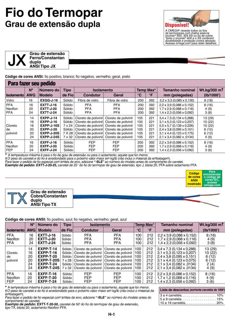 EXGG-J-16-50 50英尺延展级热电偶线,J型,16线规,玻璃纤维保护层