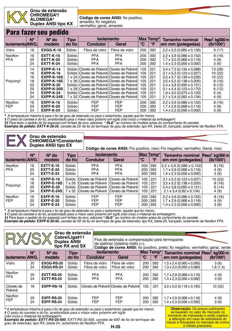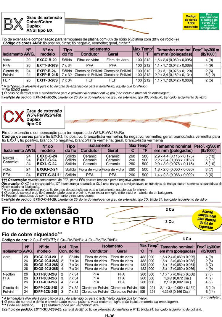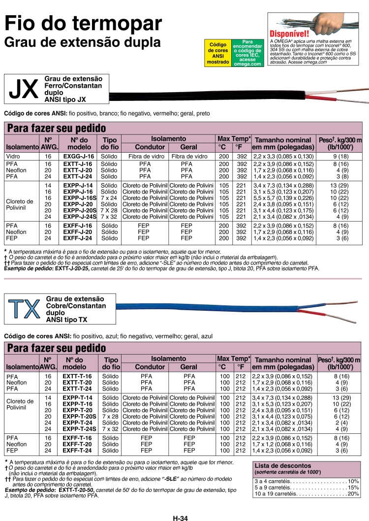 EXTT-T-16-50 50 英尺长热电偶延长线,T型,16线规,两层特氟龙绝缘层