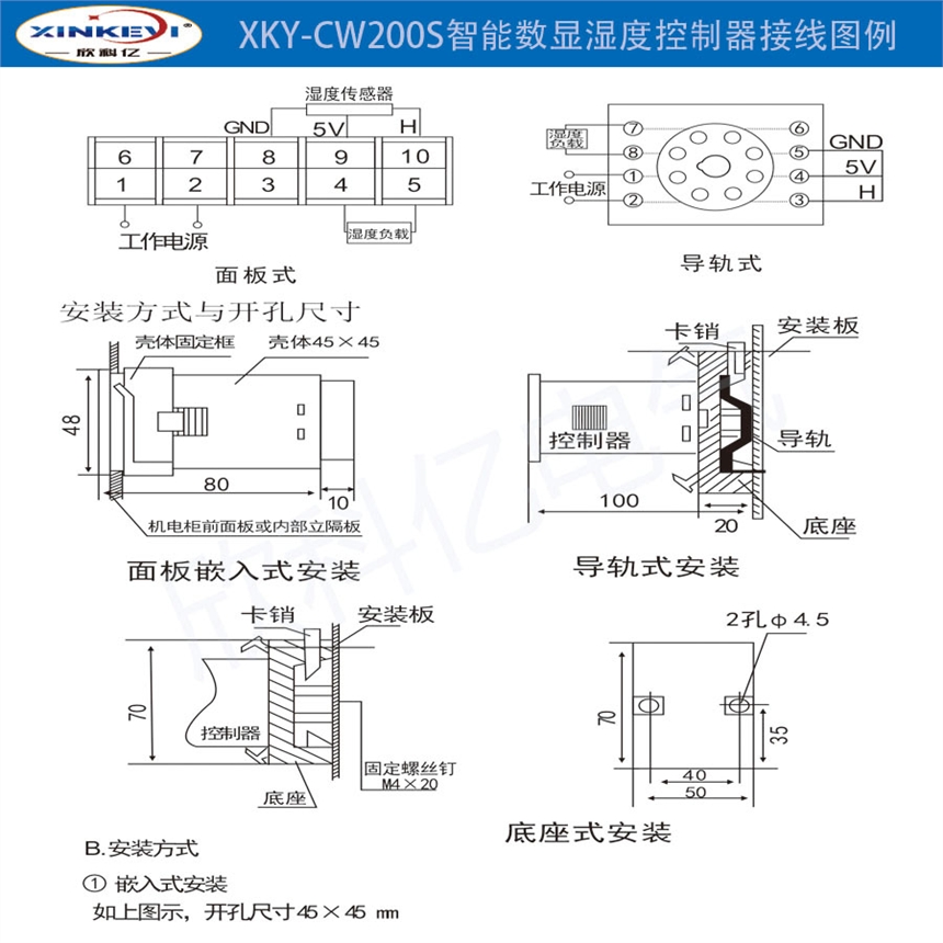 XKY-CW200S智能数显湿度控制器采用新一代传感器技术,进口高性能、精度高、寿命长湿度传感器,集成电路和其它精密电子元件组成的电路能长期在各种自然环境下稳定的工作。而具有灵敏性高响应速度快体积小寿命长,安装简便等特点。
