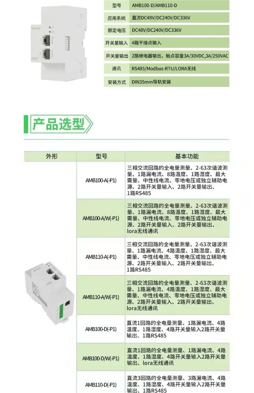 安科瑞智能母线监控AMB100-A(-P1)三相交流全电量测量