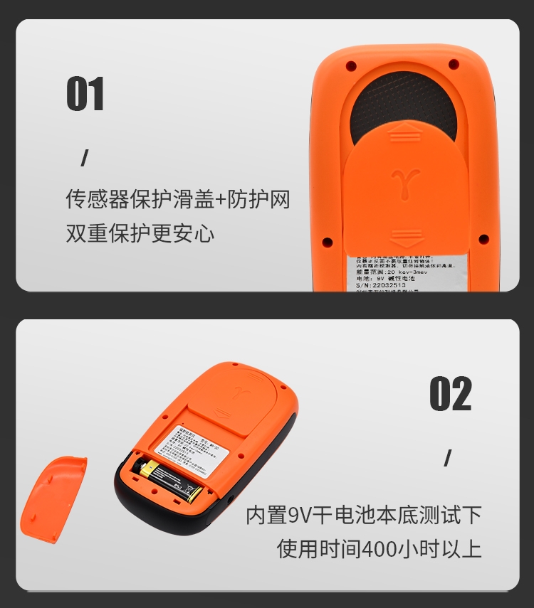 电源 | 9V电池在正常本底下工作480小时。 | ||