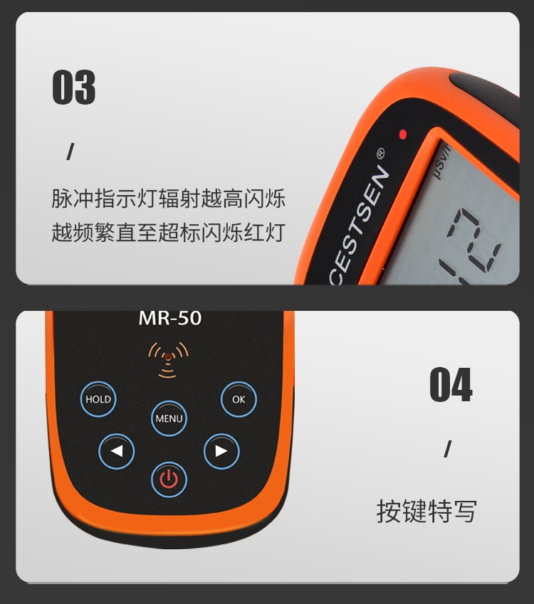 0.001-100 mR/h 0.01-1000μSv/h 0-300000CPM 0-9999X Total |