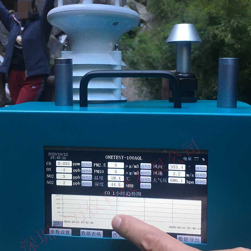 ONETEST-100AQL综合环境空气检测仪主要由触控液晶屏、按键、ARM微处理器为核心的主板、主电源、外供变送器电源、智能通道板、大容量FLASH、各参数传感器等构成:内置大容量FLASH,可通过U盘快速将FLASH中的数据转储到计算机中,内置的FLASH的容量为30M字节,最快1秒记录一次所有通道的数据,数字显示界面、实时曲线画面,可参数设置多点报警功能,内置锂电池,可连续供电13小时以上。