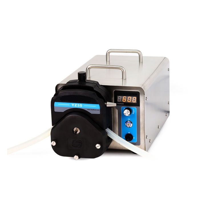 WT600S-65大扭矩调速蠕动泵采用直流无刷电机驱动,免维护,动力更强劲,多可级联四个蠕动泵泵头。具有正反、启停、全速(清洗)、调速等基本功能,可通过外部模拟量调节转速,控制启停和方向,而且增加了时间分装功能。RS485通讯中采用MODBUS协议,更易于与其他控制设备如计算机、人机界面、PLC等连接。