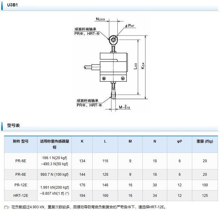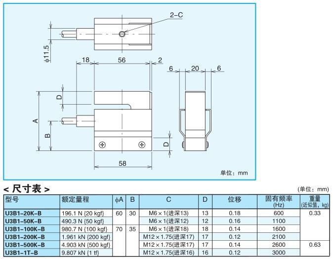 U3B1-20K~200K-B:铝合金 U3B1-500K~1T-B:合金钢 |