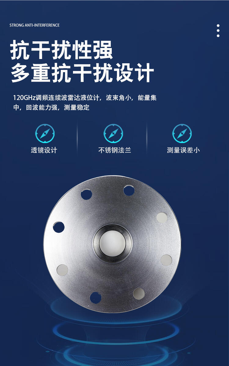 在应用方面,雷达液位计主要通过发射-接收原理来工作。它会发射一束*频电磁波并将其传播到介质表面。一部分电磁波被介质表面反射回来,通过雷达液位计接收器接收并处理,*终转化为液位值。这种工作原理使得雷达液位计能够测量不同介质的液位,如水、煤浆等。不仅如此,雷达液位计还能够实现连续监测,并能够与其他系统进行联动,实现智能化控制。