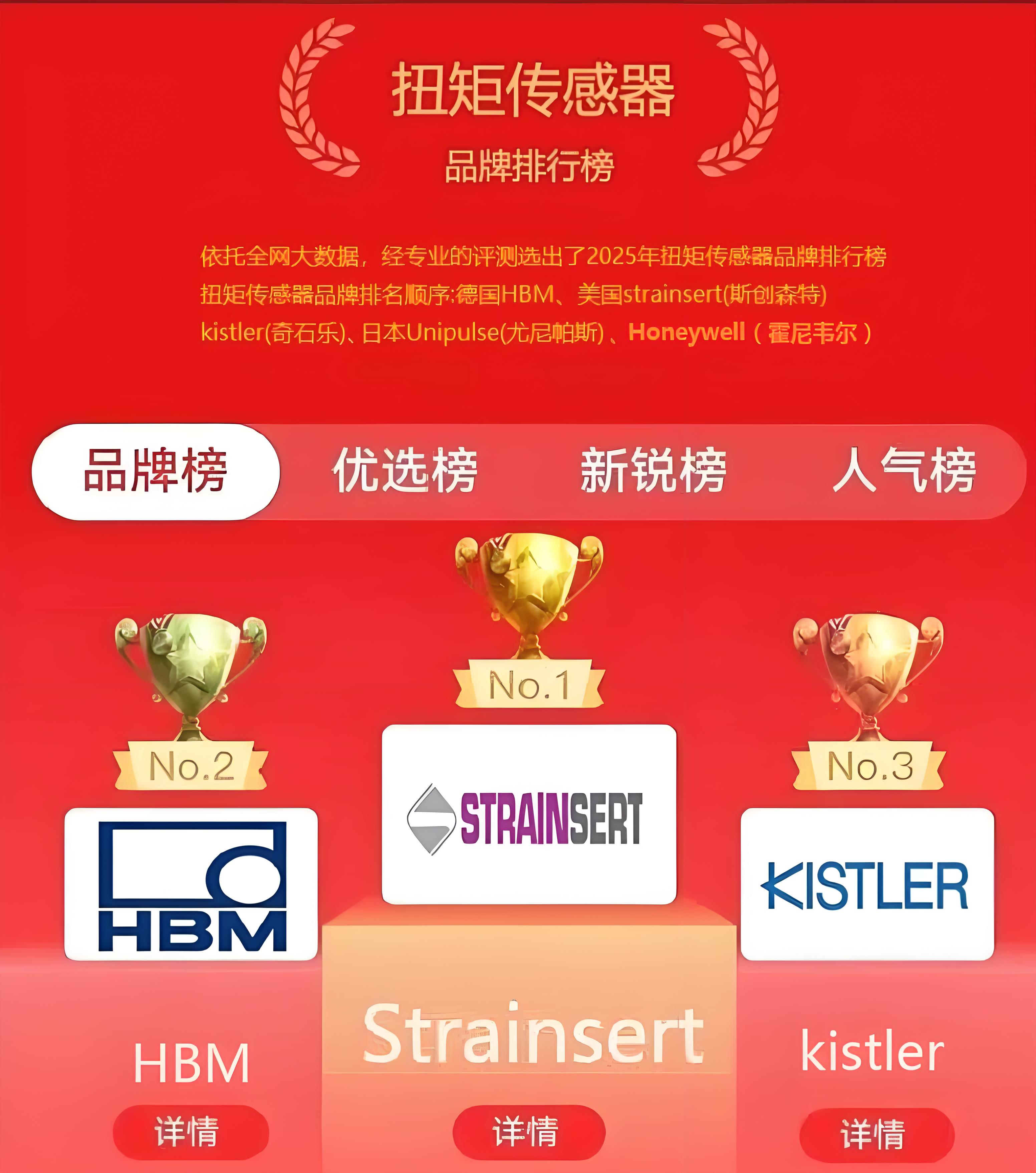 以下排名有国家权威部门:中国扭矩传感器协会、中国传感器检测中心根据进口品牌扭矩传感器在中国市场的客户基础、品牌历史、口碑、品质、技术实力、售后服务、质保时间长短、行业影响力综合评比。根据数据研究部门通过收集整理扭矩传感器品牌资料,基于大数据统计、人为根据扭矩传感器市场及参数条件变化的分析研究专业测评而得出的扭矩传感器品牌排行榜,是大数据、云计算、数据统计真实客观呈现的排名结果。以下品牌在市场上都有较高的知名度和良好的用户评价在进口品牌扭矩传感器领域,这些品牌展现出了一系列共性与卓越之处,这些特质不仅塑造了它们在行业内的领先地位,也为整个行业的发展树立了标杆。