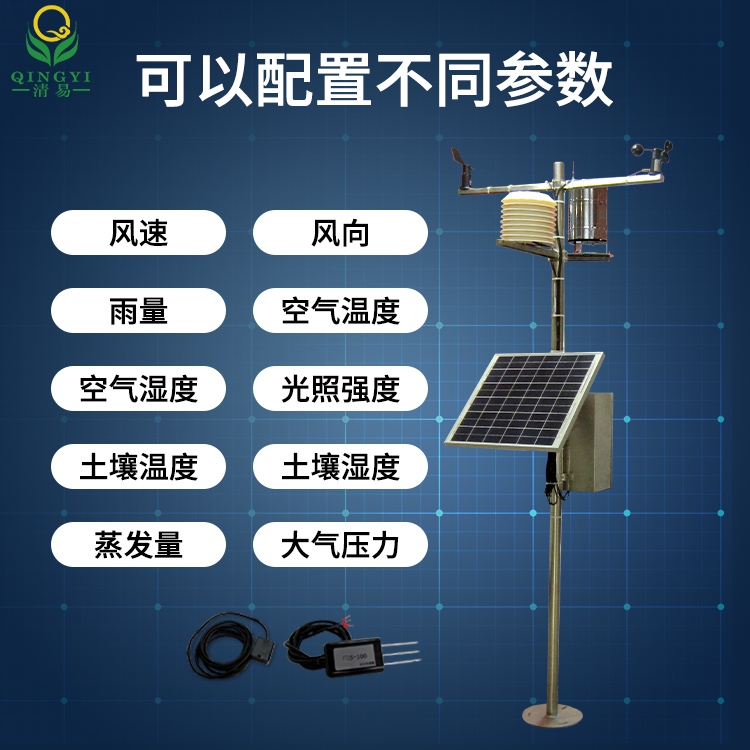 小型气象站由气象传感器、数据采集终端、电源系统、防护箱和支架等部分构成。风速、风向、雨量、蒸发量等传感器为气象传感器,具有的特点。数据采集终端具有气象数据采集、气象数据定时存储、参数设定、友好的软件人机界面和标准通信功能。