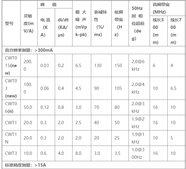 产品简介:CWT系列交流电流探头是实实在在为您解决电力电子的电流测量问题的转换工具:高带宽、大容量的测量范围,配合高质量的测量指标,保证您的测量要求;纤细、柔软的感应套环,让您轻而易举地与实际测量对象相连接。