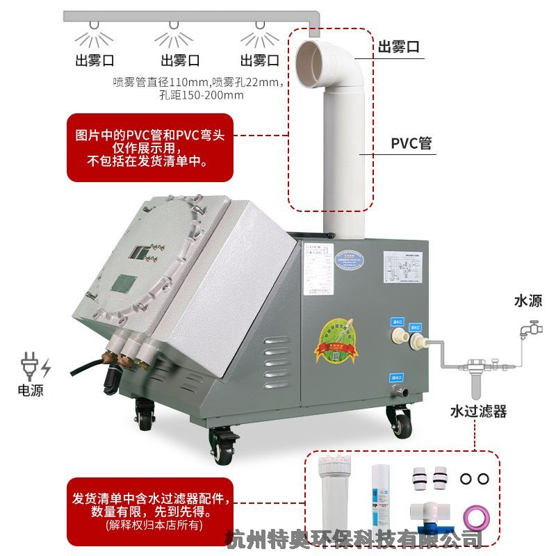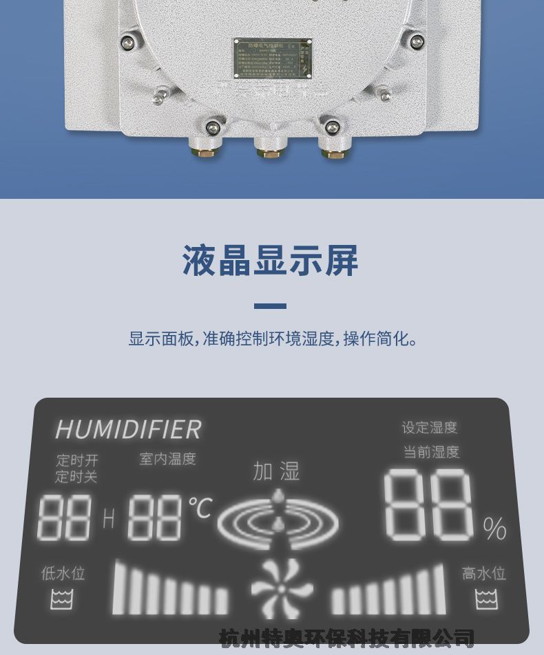 危化库加湿防爆喷雾加湿机,防爆超声波加湿机,百科特奥防爆加湿机BTaw -06通过特殊防爆技术加工处理,可广泛应用于1区,2区防爆级别,涵盖国防、科研、石油、化工、医药、加工制造、生物制药等多种行业,为存在ⅡA、ⅡB级,T1~T4组可燃性气体、蒸汽与空气混合形成的易引发爆炸的危险场所,并有湿度控制要求场所设计的特种加湿设备。