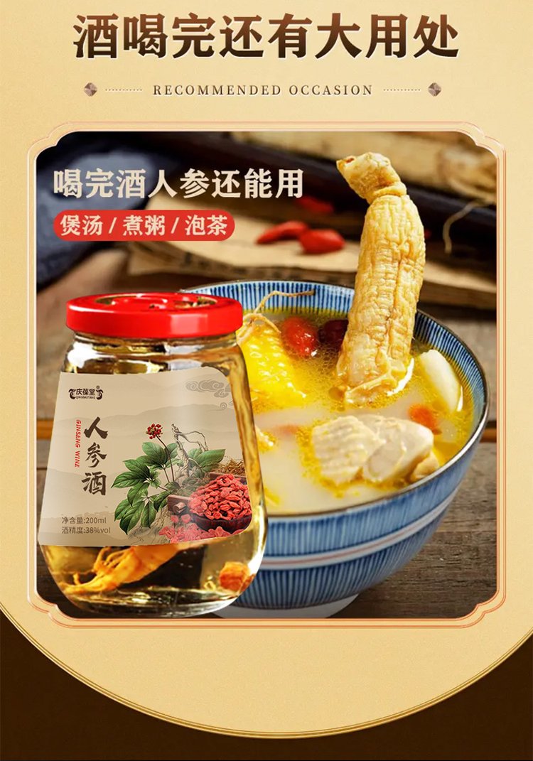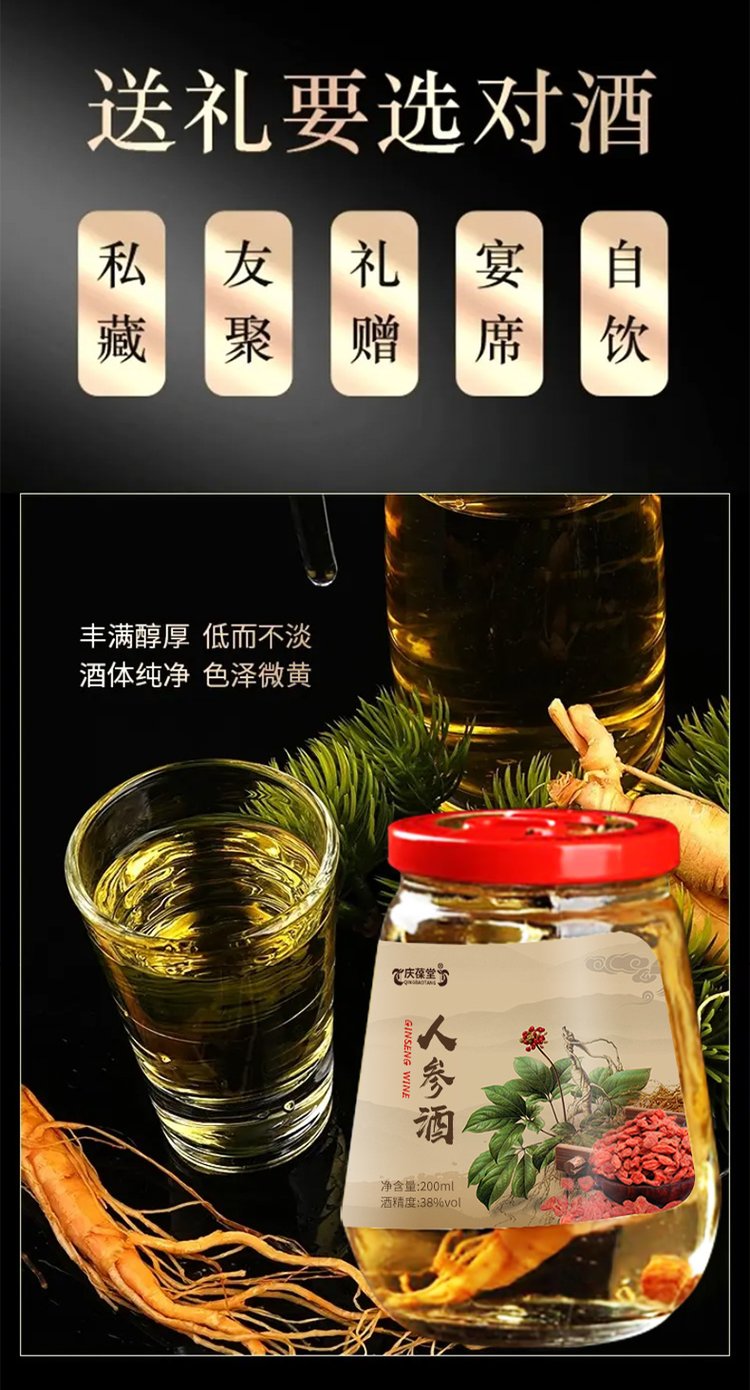原料与配料 | 白酒、人参(5年及5年以下人工种植人参)、枸杞 | ||