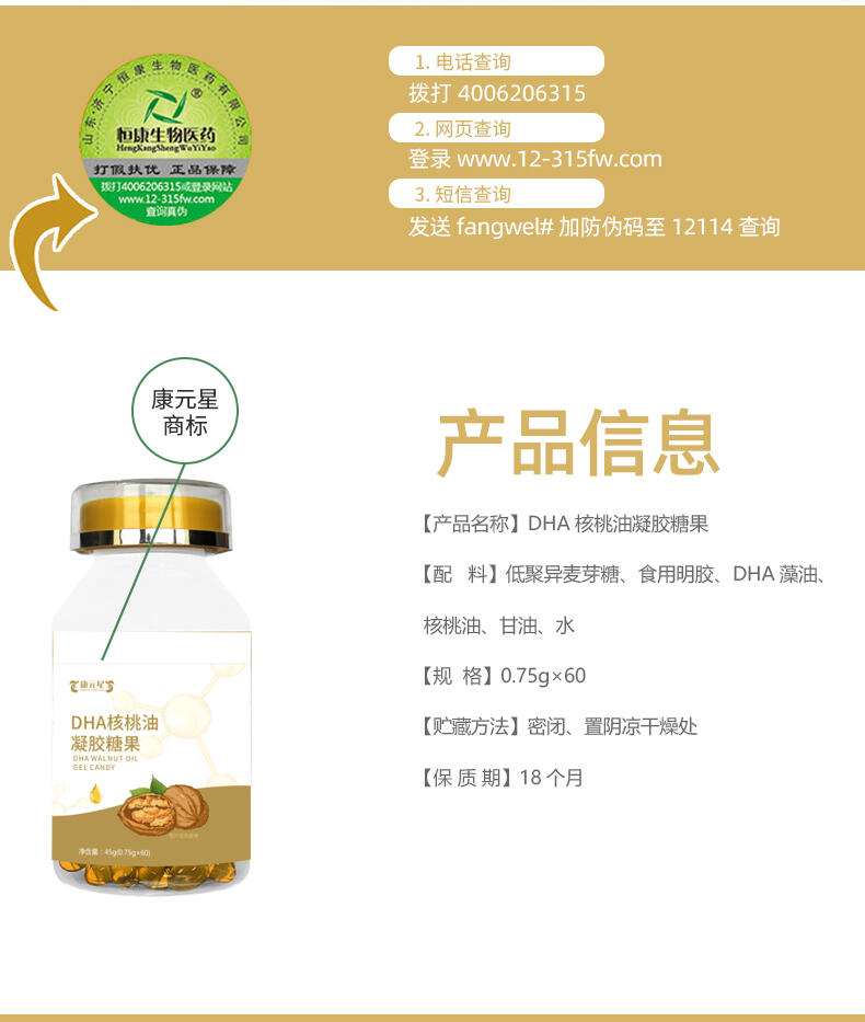 DHA核桃油凝胶糖果 OEM贴牌代加工 15805376813