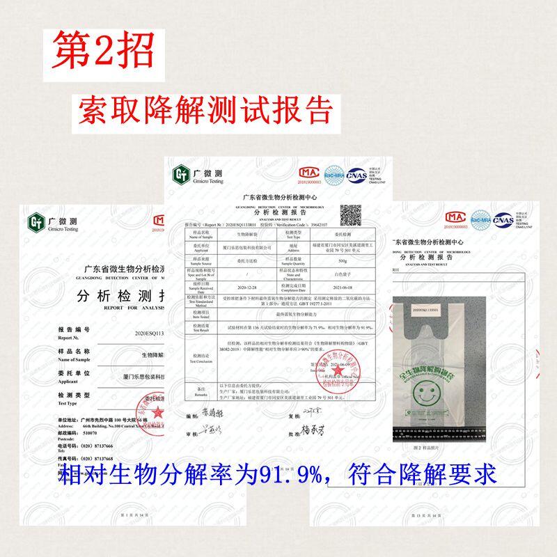 采用聚乳酸PLA和聚己二酸PBAT生物降解材料,加工而成,一次性可降解购物袋,呈现半透明白色,闻着会有类似红糖的味道,手感柔软,提携方便,舒适不勒手。