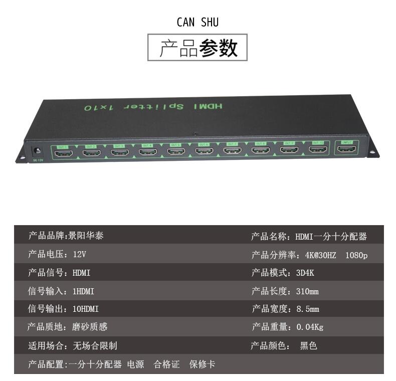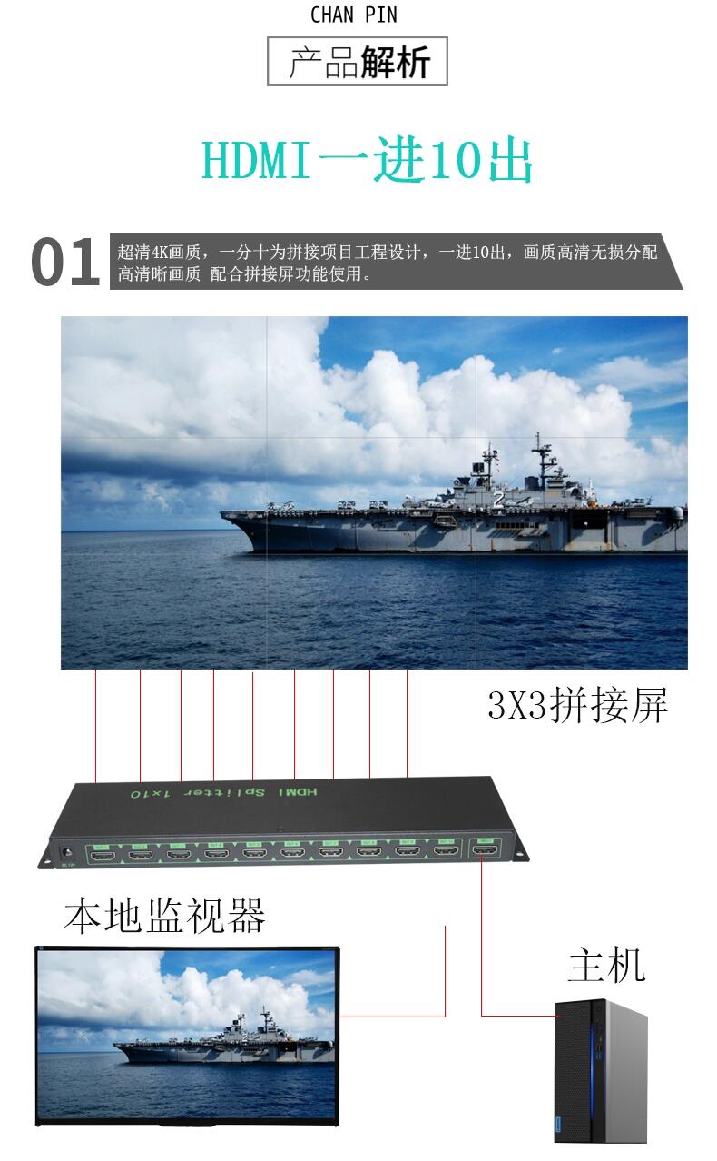 HDMI分配器一分十监控信号一进十出多屏拼接专用