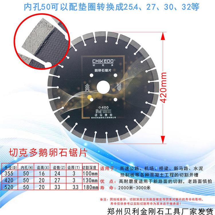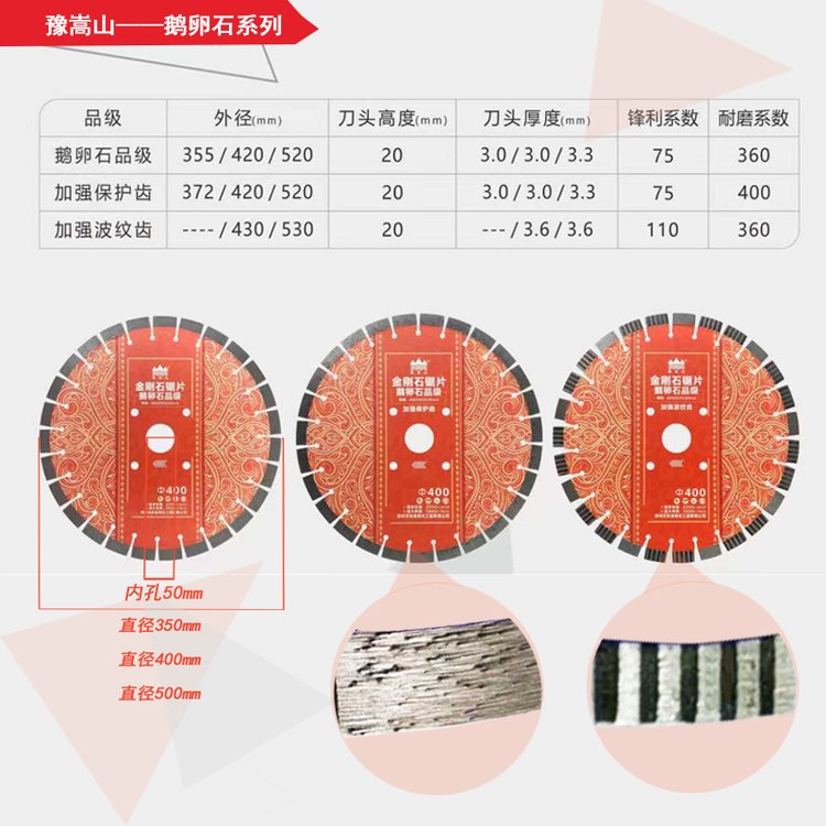 豫嵩山鹅卵石锯片耐用直径350-400-500-600耐磨路片混凝土切割片