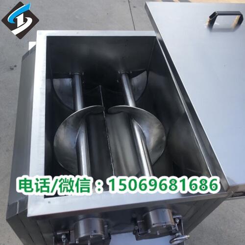 我们看设备图片时候会发现,料筒中的搅拌匙有的是一根绞龙的,有的是两根绞龙的,这个是取决于设备的型号和配置要求,一般大型号都是采用双绞笼的,因为料筒比较大容积也比较大,只用一根搅拌轴搅拌完整桶馅料时间会很久的,所以都是采用双绞笼的,单绞龙的一般是100型拌馅机用的比较多。无论哪种型号都可以根据客户要求定做,但是大型号的都是推荐使用双绞龙。