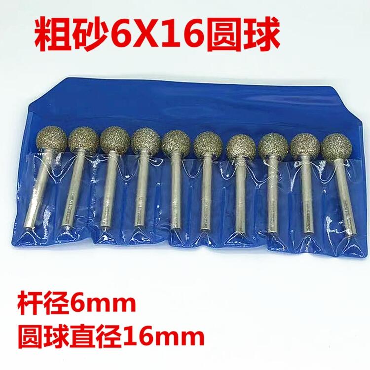 粗砂金刚石磨头适用范围:可装在电磨机,雕刻机,气动雕刻笔上使用。金刚石磨头选用的是高品位多菱角金刚石电镀而成,主要用于研磨加工,模具的加工和修复,石雕刻子,刻花,割线条,打磨,镂空,玉石雕刻,玻璃雕刻,清理铸,锻,焊件的毛边,毛刺,焊缝。齿磨加工。各种机械零件的倒角和沟槽的加工。清理管道,精加工机械零件的内孔和表面。