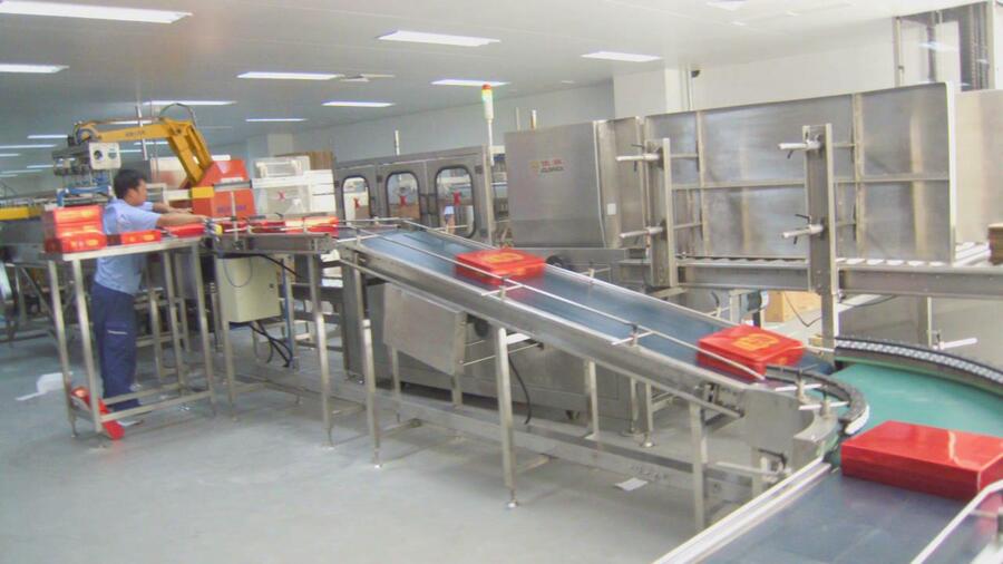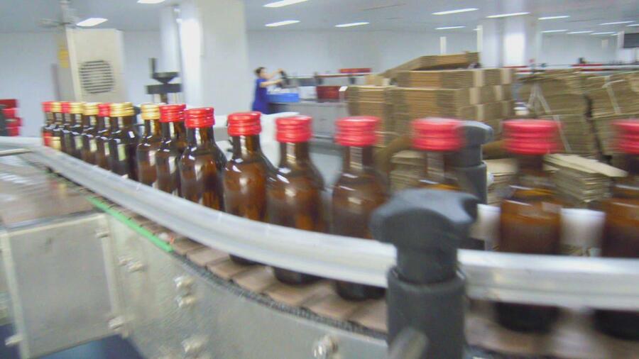 口服液包装线-药品装箱线-液体制剂包装线,口服液包装系统主要由开箱机、底板放置机、机器人装箱机、合格证放置机、顶板放置机、自动折盖封箱机、无人捆包机、动力辊线体组成;提供口服液装盒后的整套包装解决方案。