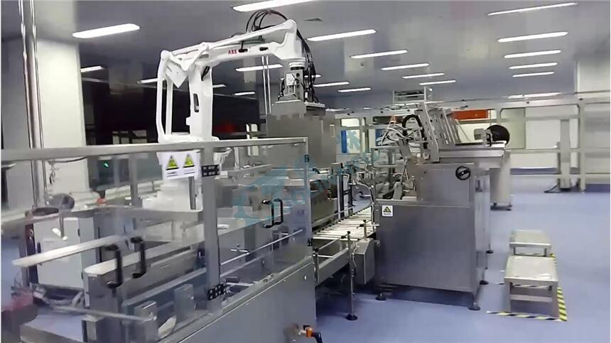 饮料全自动装箱机由机械手抓来实现抓、放瓶子,通过机械运转、气动电控制把瓶子准确可靠地从输瓶台上抓起并装入箱中。集整列、移载、提取、装箱一体,从而提高了装箱效率。装箱机器人适应于饮料、食品、啤酒、塑料、电子等生产企业对袋装、盒装、瓶装等各种形状的成品配以不同抓手进行装箱。