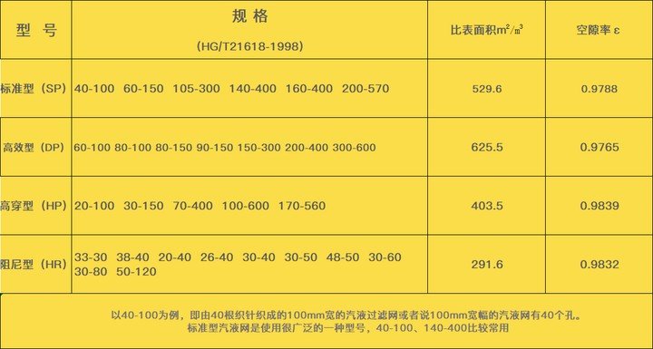 丝网类型标准型、高穿型、高效型、阻尼型