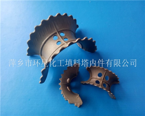 异鞍环填料在矩鞍环的外形上加以改进环边有波纹状,异鞍环塑料鞍型填料类似于马鞍形状,填料层内的空隙较环形填料(尤其是拉西环填料)更加持续,可使得气体向上流动时主要沿弧形通道流动,有利于液体分布和增加了气体通道,比鲍尔环阻力小、通量大、效率高。填料强度和刚性较好,是目前应用最广的一种散装填料。塑料异鞍环阻力小、通量大、气液传质效率高,鞍形结构使其堆放时不会叠合或架空,空隙率大,压降和传质单元高度低,泛点高、气液充分接触、比重小、传质效率高,压降低,通量大,效率高,负荷弹性大,抗污性好,也不会相互掩蔽传质面,填充均匀、操作稳定。适用于脱硫、脱碳和硝酸、硝酸盐生产的吸收操作。