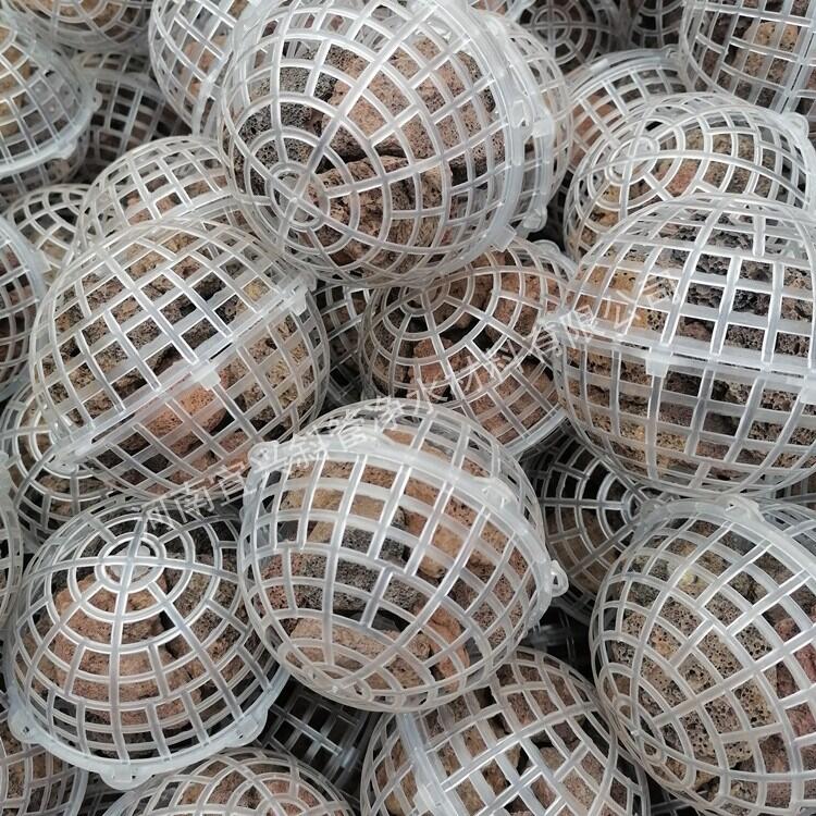 ???? 该填料系列又具有耐腐、耐温、耐老化、高强度的高分子聚合物注塑而成,分内外双层球体,外部为中空鱼网球体,内部特殊工艺制成的弹性毛丝体组合而成。主要起生物膜载体的作用,同时兼有留悬浮物的作用,具有生物附着力强、比表面积大、孔隙率高、化学和生物稳定性好、经久耐用、不溶出有害物、不引起二次污染、防紫外线、抗老化、亲水性能强,阻力小,布水、布气性能好,又有功割气泡作用等特点,在使用时直接投入水中,在水里似沉非沉,能全方位自由活动,无死区。可试水质浓高低和水量的增减,填料可多可少。实际投放量为池体积的30%-70%,进出口需用格网拦住,以免随水漂走。